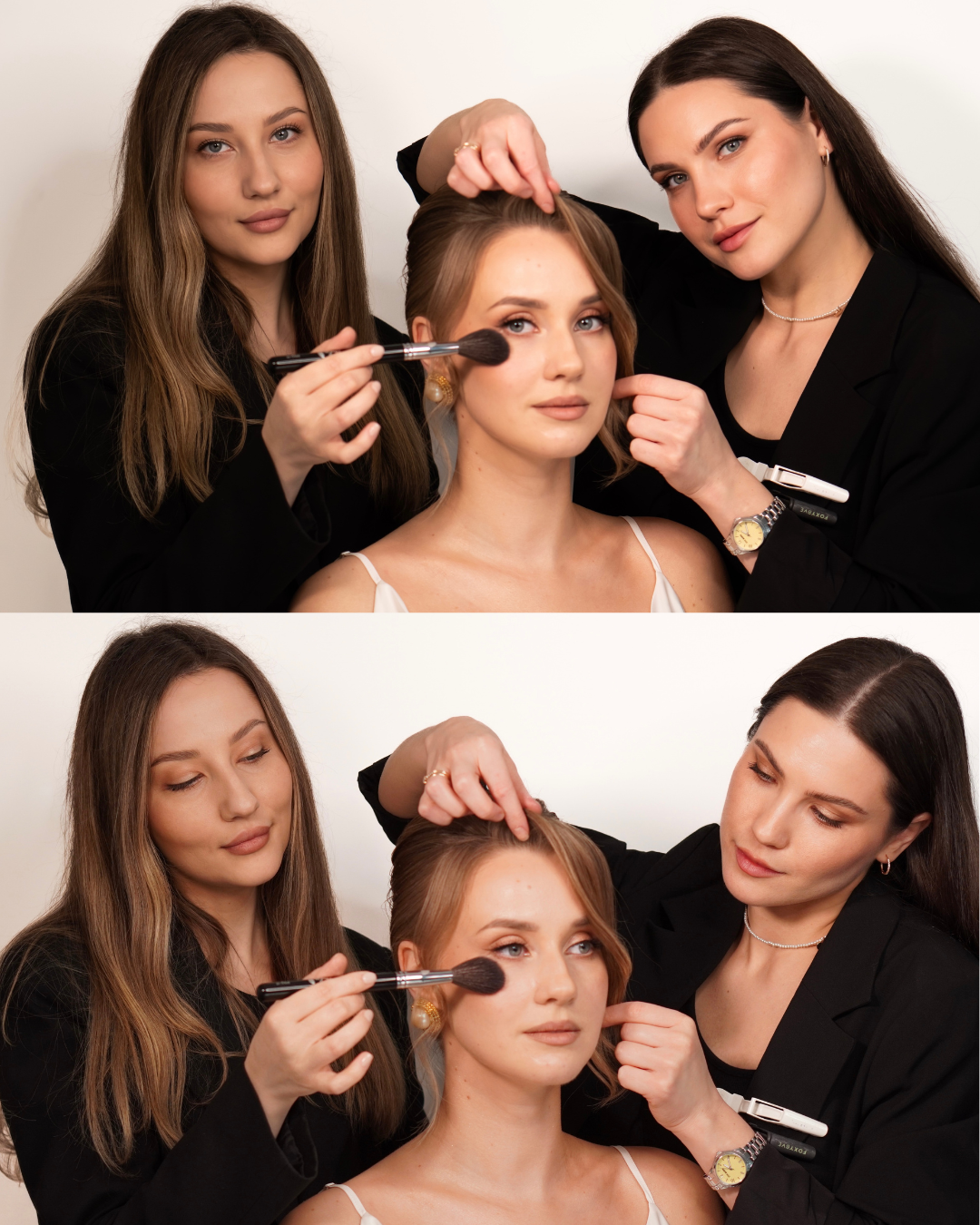 We provide elite on-site hair + makeup services with a focus on excellent customer service and incredible artistry. We know exactly what looks stunning under your photographer's light — because we've done this 700+ times. We are professionally trained, with years of experience. We’re passionate about our craft and we love what we do.